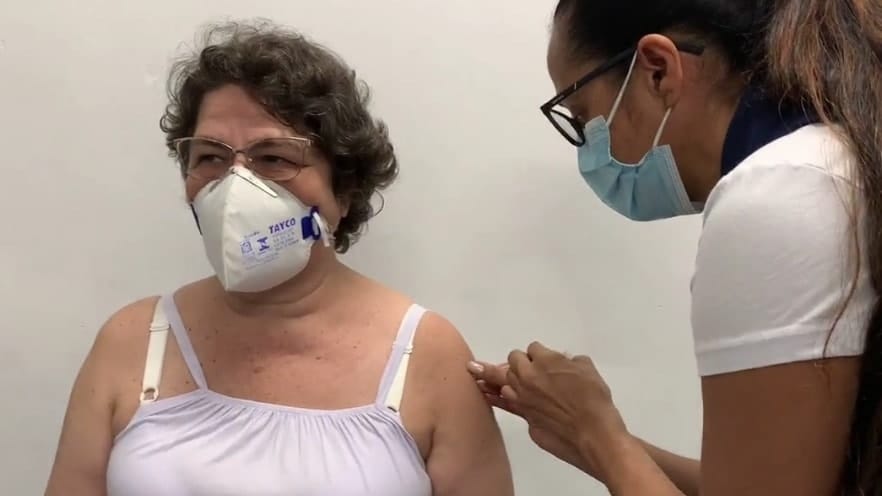 Crédito Jaumais e Reprodução Central da Notícia Mara Santangelo é vacinada, a primeira jauense