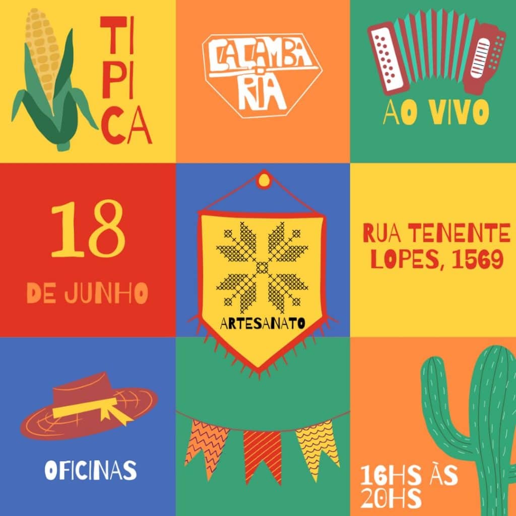 A Feira Junina da Caçambaria reunirá música, gastronomia, artesanato, artes plásticas, contação de histórias e programação no decorrer da semana também.
