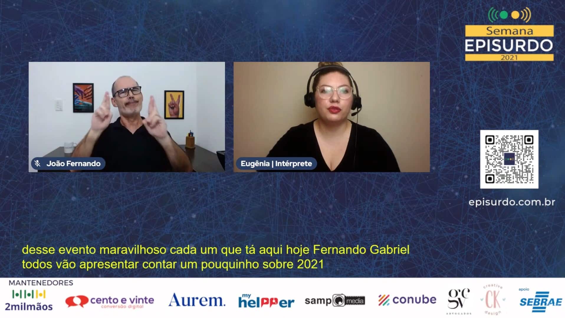 Fernando Ramazzine abre a Semana EPISURDO 2021 ao lado da intérprete Maria Eugênia. O evento é apresentado em Libras e conta com tradução para a língua portuguesa e o recurso da legenda.