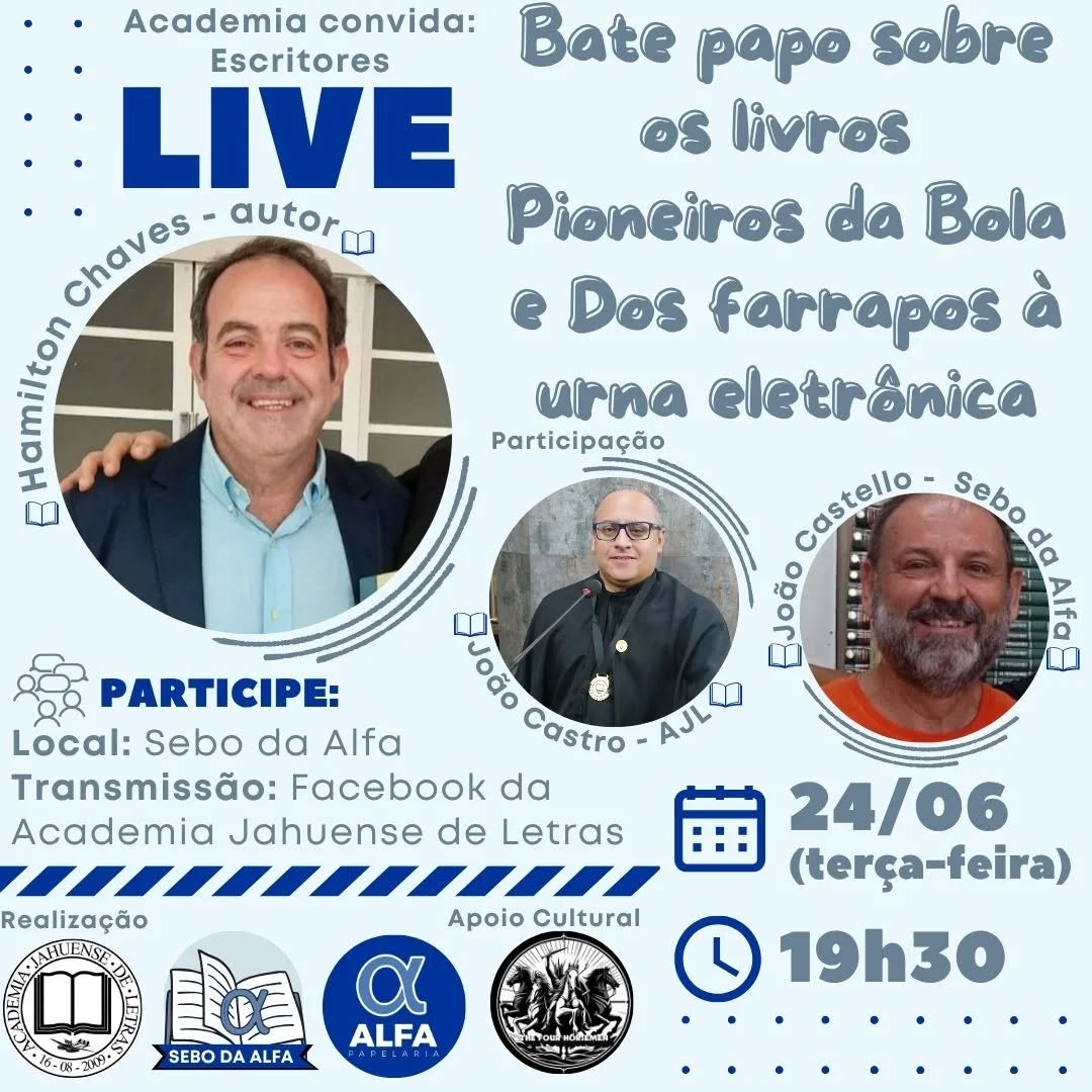 - Transmissão ao vivo pelas redes da Academia Jauense de Letras