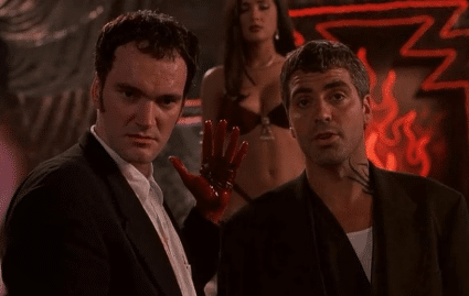 Digo isso, pois começo com um filme que me fez delirar na adolescência e me apresentou Quentin Tarantino. “Um Drink no Inferno” não é dirigido por Tarantino, mas tem em sua autoria o roteiro, além de ser coadjuvante e irmão do protagonista George Clooney. O encontro no bar Titty Twister, perto da fronteira entre EUA e México, tinha como objetivo dividir o dinheiro de um assalto bem sucedido para os irmãos. Mas acaba se tornando um pesadelo para eles e para a família de um pastor em dúvida em sua fé, sua filha e seu filho.