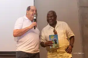 O autor com o jauense Edu Américo no lançamento. Foto retirada do site Terceiro Tempo