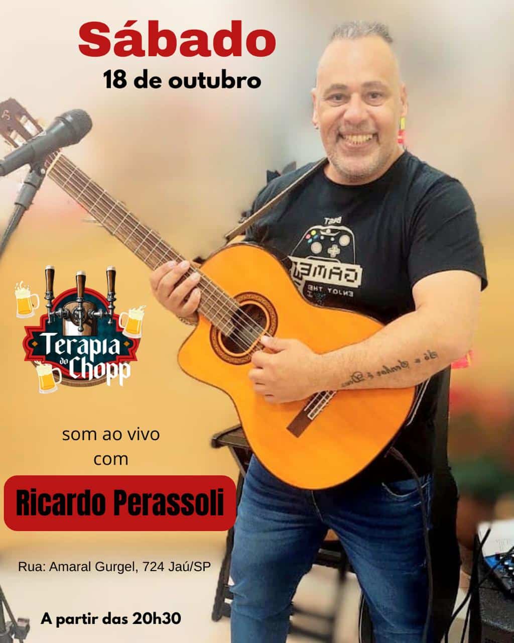 Ricardo Perassoli neste sábado (18/10) na Terapia do Chopp em Jaú.