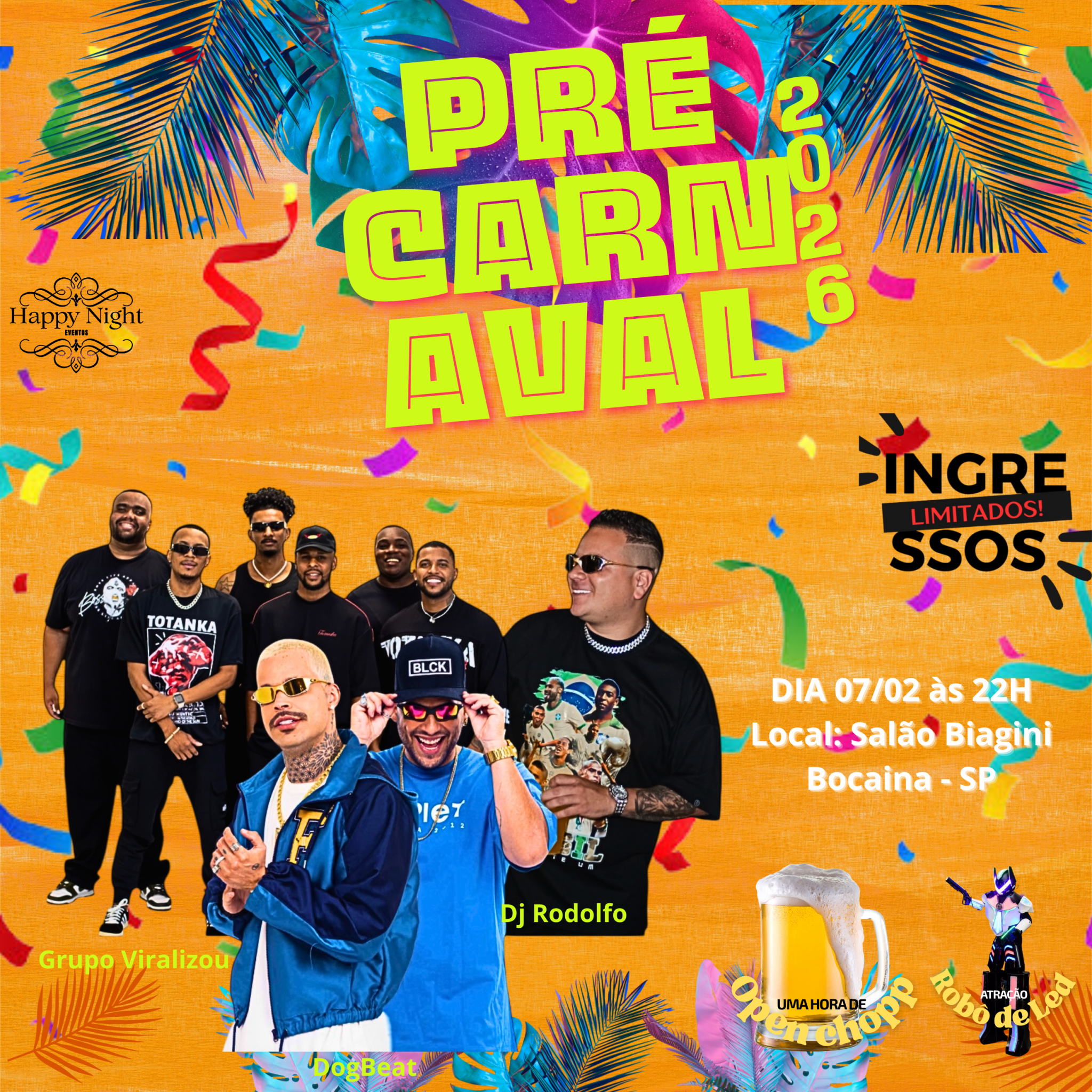 Pré Carnaval 2026, 07 de fevereiro, Salão Biagini em Bocaina